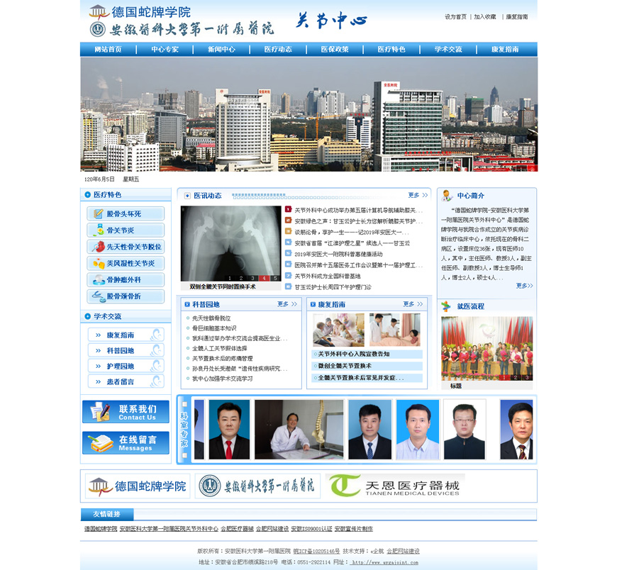 安徽醫科大學第一附屬醫院關節外科中心是德國蛇牌學院與我院合作成立的關節疾病診斷治療臨床中心,依托現在的骨科二病區,設置床位36張,現有醫師10人,其中,主任醫師、教授3人,副主任醫師、副教授3人,博士生導師1人,博士2人,碩士4人,1人享受省政府津貼。該中心以關節疾病診斷和治療為主攻方向,每年完成關節類手術共200多臺次,其中包括人工肩、髖,膝關節置換手術,髖、膝關節翻修術,發育性髖關節脫位的截骨矯形手術以及大齡發育性髖關節脫位的人工關節置換手術,關節周圍腫瘤切除以及假體置換術。“德國蛇牌學院—安徽醫科大學第一附屬醫院關節外科中心”的成立,對推動學科的專業化發展和亞專科建設、促進安徽省關節外科的發展將起到積極的作用。糖網絡平臺為廣告企業主以及站長提供:線上名片、友情鏈接平臺、域名交易、源碼買賣等商務服務,專業、優質、高效的技術為己任,幫助更多人實現資源整合!