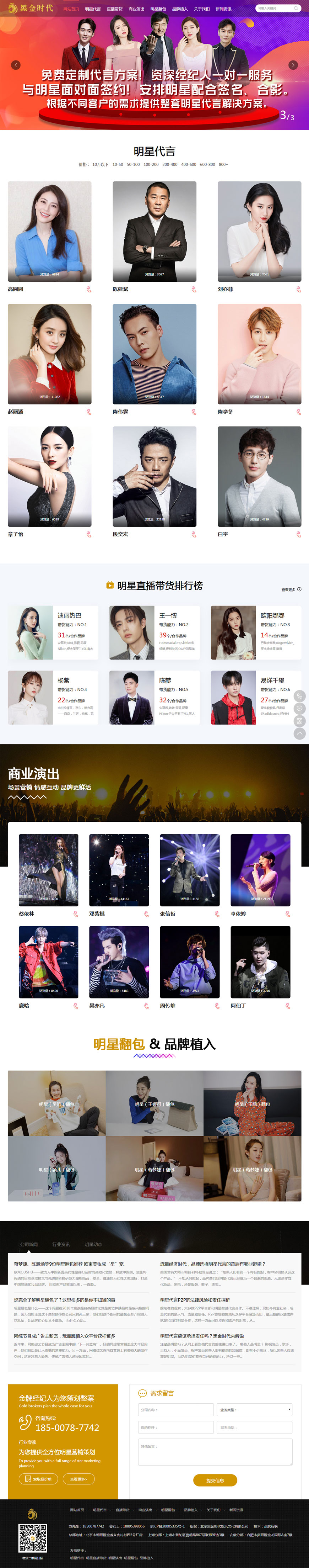 黑金時代娛樂文化有限公司(Black Gold Era,簡稱“BGE”),專注服務(wù)于品牌客戶的中國知名全能型娛樂經(jīng)紀公司,匯集演藝及體育領(lǐng)域強大的資源,有眾多簽約合作明星;匯聚演員、歌手、導(dǎo)演、體育明星、藝術(shù)領(lǐng)袖、網(wǎng)絡(luò)紅人等多類別領(lǐng)域人才資源;集藝人經(jīng)紀、藝人包裝、廣告代言、活動演出、公關(guān)策劃執(zhí)行、法律咨詢、數(shù)字媒體營銷推廣等多項經(jīng)紀業(yè)務(wù)于一體的娛樂公司。