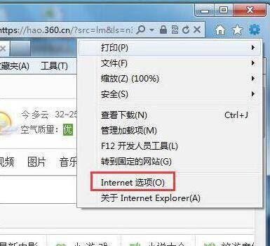 1、修改IE的Internet選項(xiàng)設(shè)置,打開(kāi)IE瀏覽器,點(diǎn)擊“工具”進(jìn)入Internet選項(xiàng)。如圖所示:
