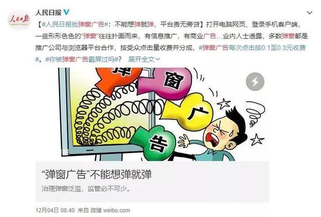 近日,人民日報發文,指出彈窗廣告嚴重影響上網者的心情和工作效率,并且有諸多風險,應得到嚴格治理。