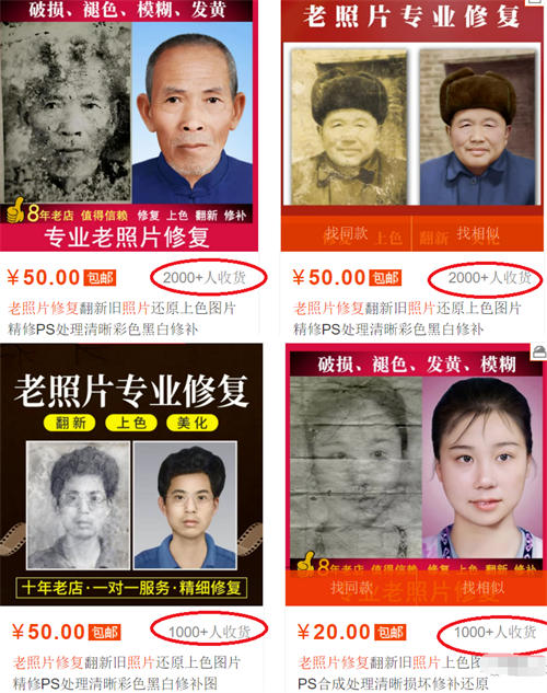 老照片修復是大冷門的細分類別的項目,只要堅持輸出,就一定會有收益!大家可以想象一下,如果父母或者爺爺奶奶已經不在了,或者說特別老了,你找到了多年前的一張老照片,在你人生中或許是特別珍貴的一張照片,讓你花個一兩百塊錢恢復一下,你會做嗎?我比較感性一點的說,我一定會!因為真正值得回憶或珍藏的東西是無法用金錢衡量的!