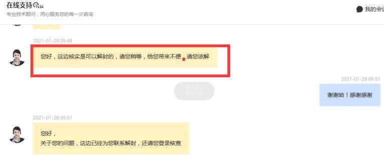 然后另一邊,就是跟騰訊云的客服進行溝通確定下問題細節(jié),并告知他們涉及違規(guī)的文章已經(jīng)全部刪除,申請解封。