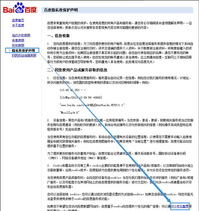2、點開“使用百度前必讀” 選擇“隱私權保護聲明”,往下點擊藍色小字“個性化工具”;