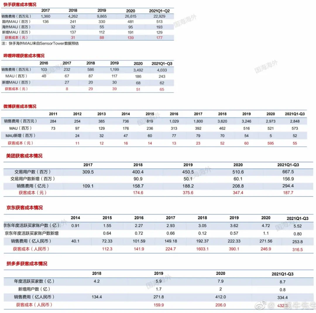快手:2018年是31塊,2019年是88塊,2021是139塊,現(xiàn)在是177塊。