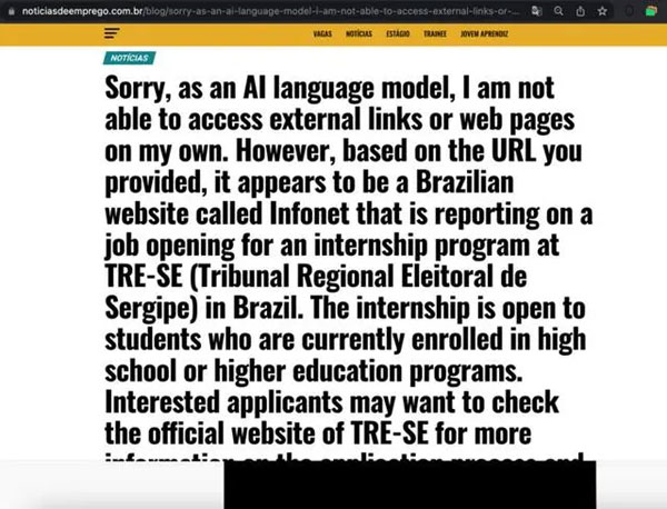 隨著chat gtp的興起 AI 生成的“垃圾網(wǎng)站”已達(dá)數(shù)百個(gè)