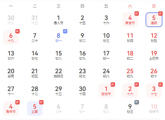 現將清明放假有關事項通知如下:2026年4月4日(星期六)至2025年4月6日(星期一),共3天,2025年4月7日(星期二)正式開始上班。